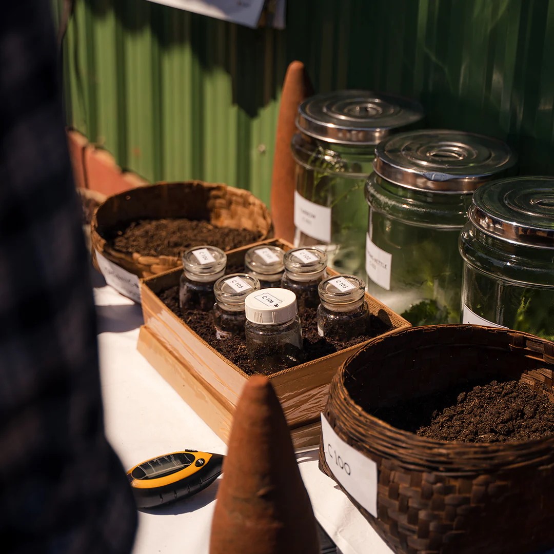 BLACK100 which is prepared with cow dung in clay cones, to help enrich microbial activity, activate the boron in the soil and improve its water retention.