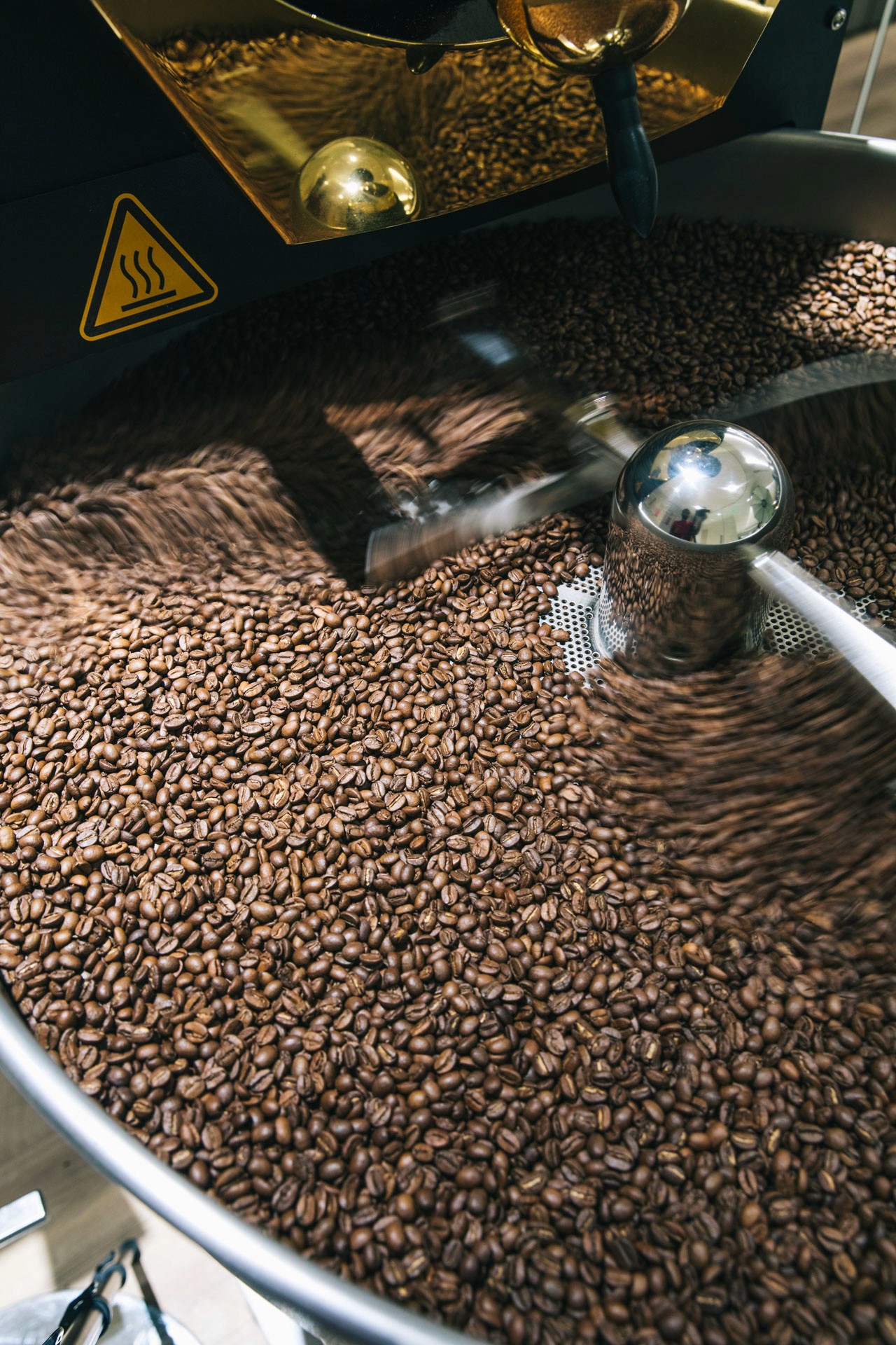 In the second step, the green beans are inspected in a colour-sorting machine so that inconsistent beans can be removed.