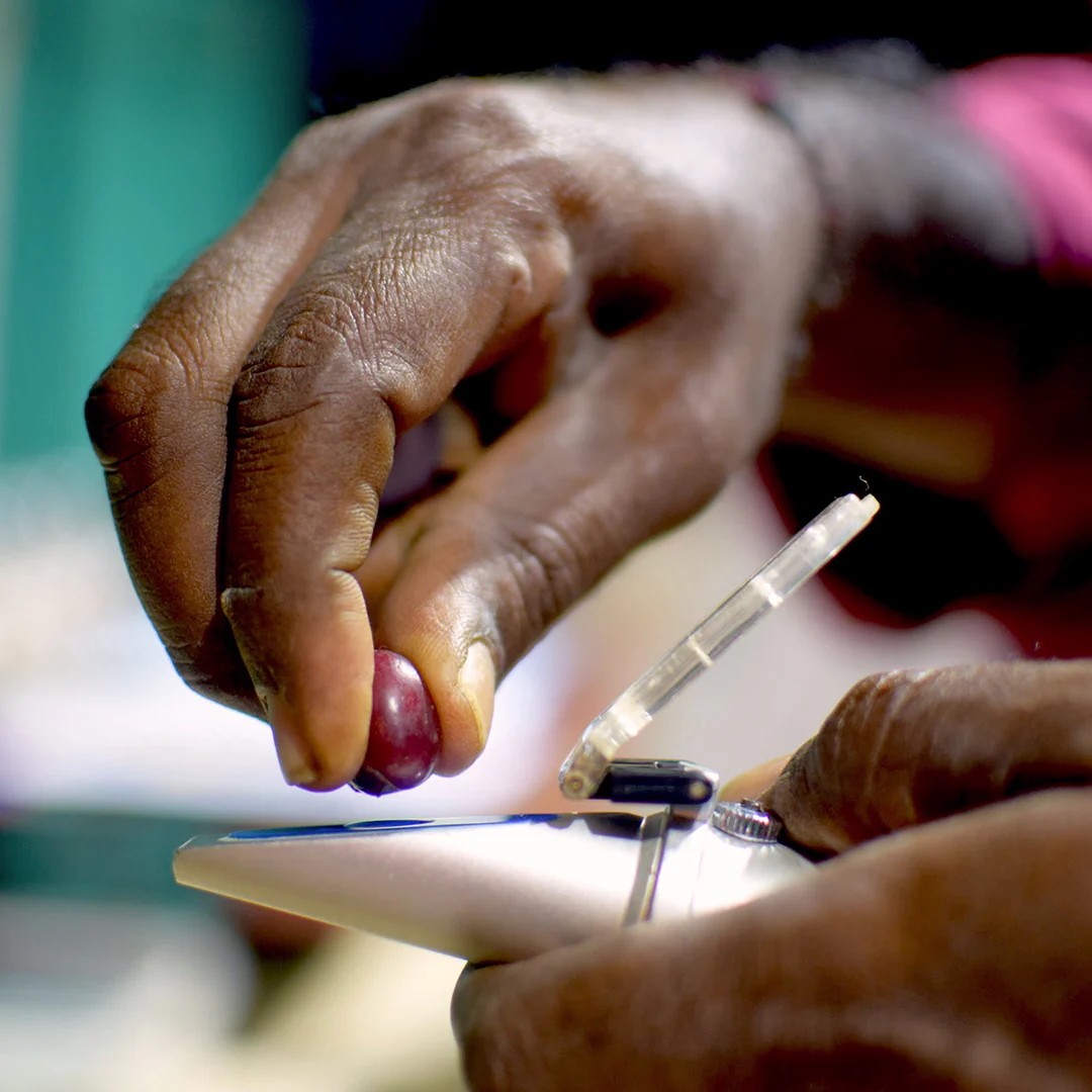 At the CPU, a team of experts conducts a second quality check on every arriving crate of coffee. The team also indexes the sweetness of coffee cherries using the Brix meter.
