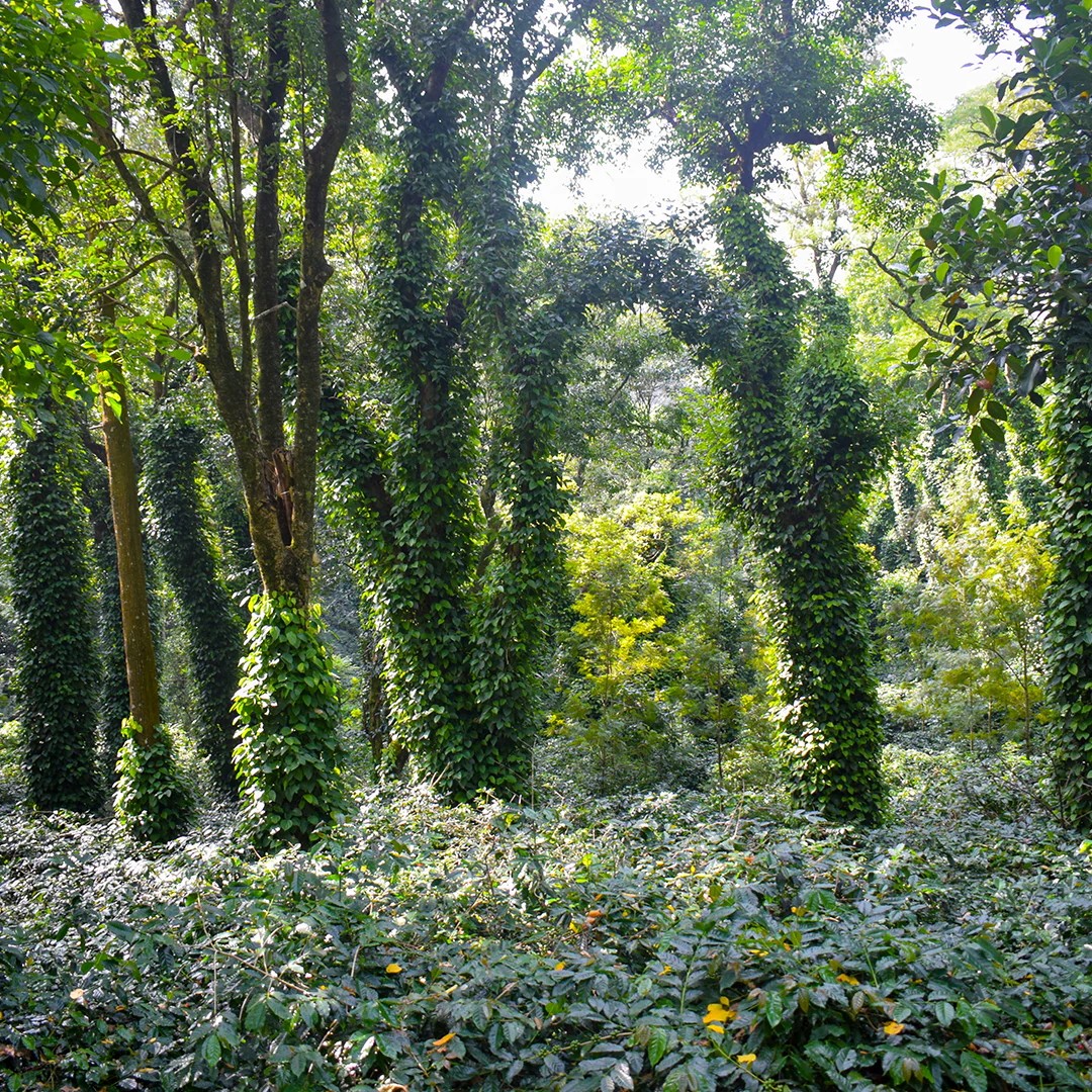 We've also introduced biomass-rich trees and timber trees like gliricidia, mahogany, arjuna and dadaps. Trees that are crucial in enriching the floor of the coffee farms with their annual leaf fall, which helps restore organic matter in the soil.